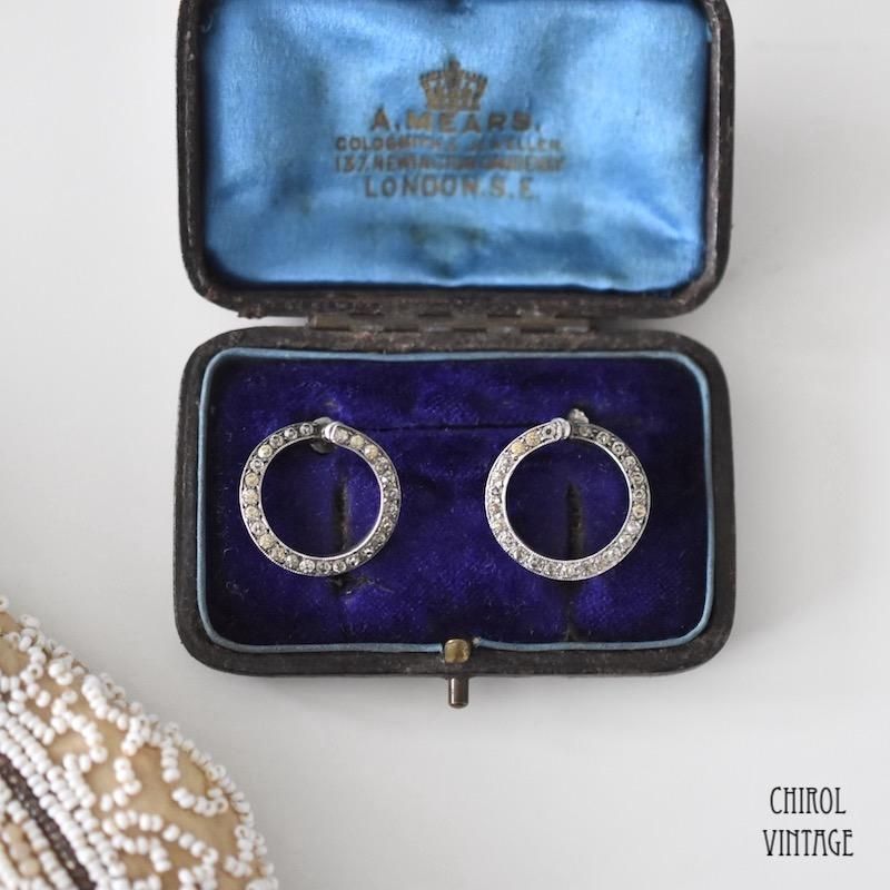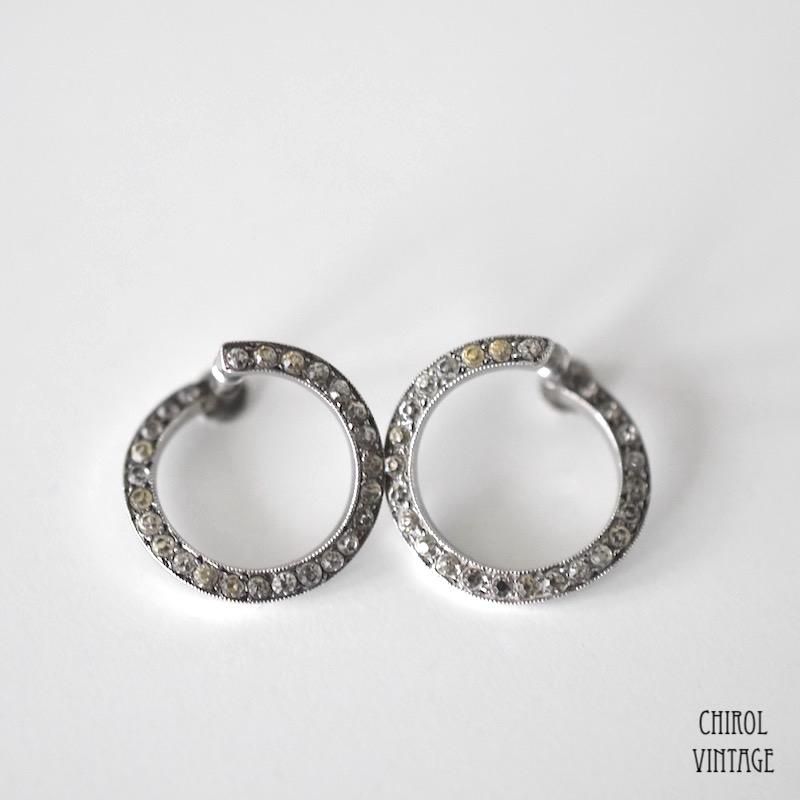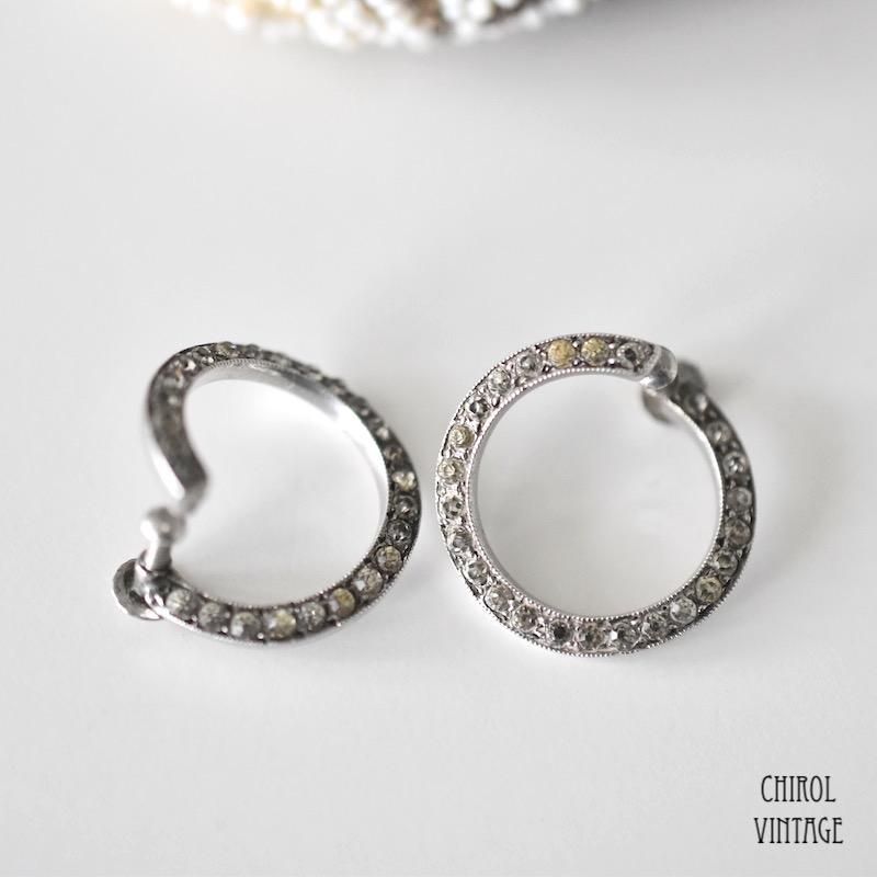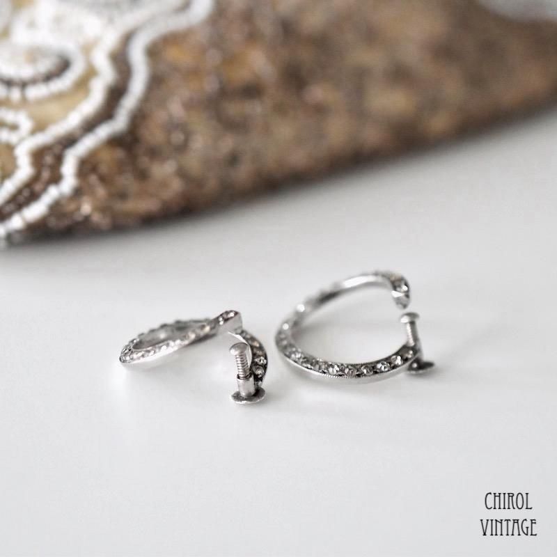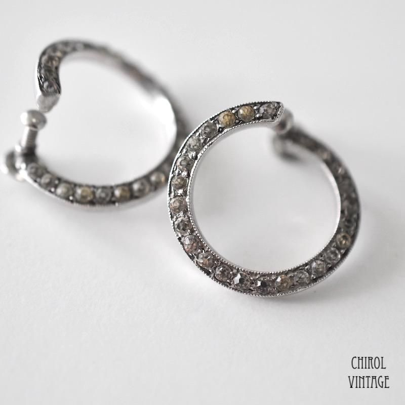 アンティーク クリアグラス シルバー ツイストフープイヤリング