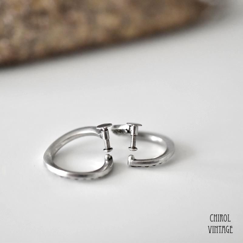 ねじれのあるフープデザインがユニークな、ハイクオリティのヴィンテージシルバーイヤリング。