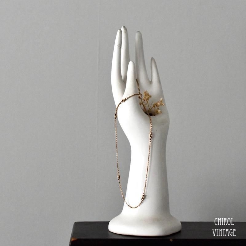 モードな雰囲気のあるアイテムですが、古いアンティークのチェーンで、クラスプも当時のオリジナルのものが付いています。