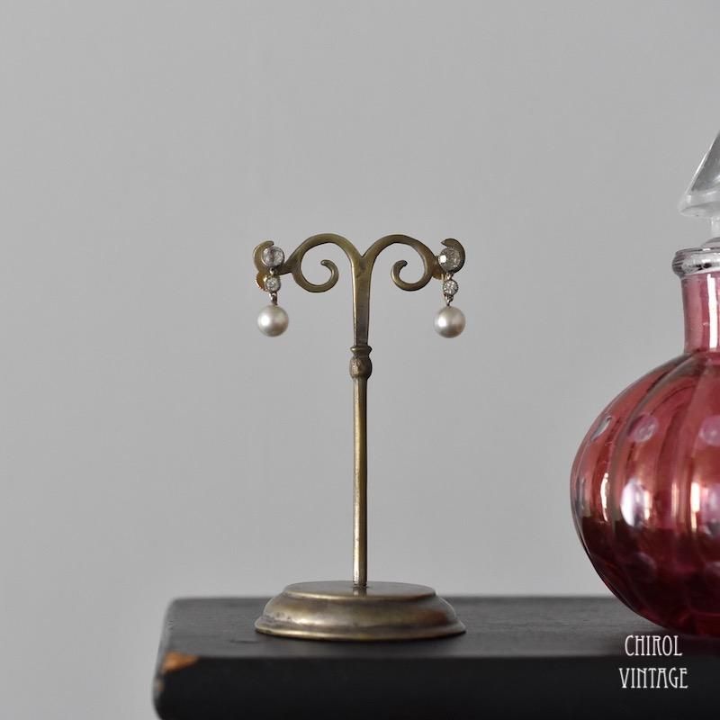 まるでダイアモンドのように輝くクリアグラスの先に、アンティークのブロウンパールが短くドロップした可愛らしいデザイン。